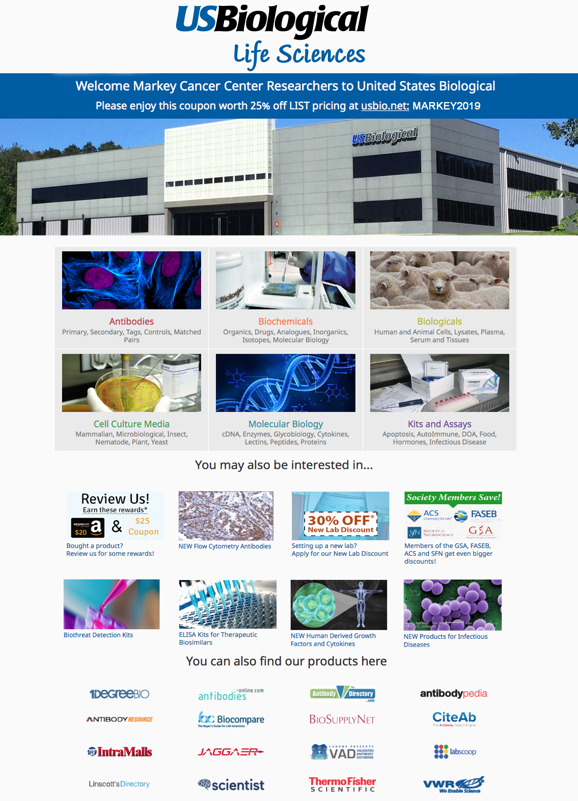 I was tasked by United States Biological with creating landing pages, promotional advertisements, and home page updates.